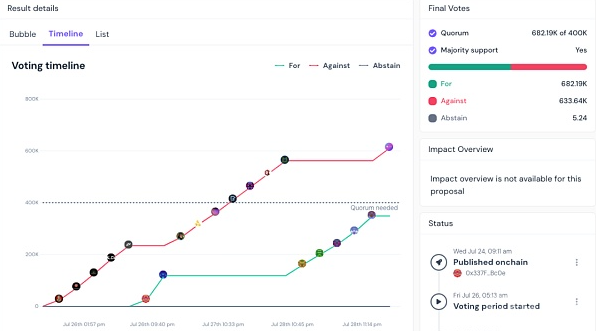 提案 #289:該提案控制了 Goldenboys 提取資產的地點,并顯著增加了要求的 COMP Tokens數量。盡管投票中反對票一度領先,但最終提案以微弱優(yōu)勢通過。
