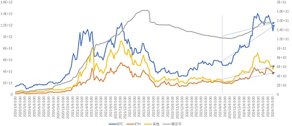 3.最近半年持有BTC依然是最優(yōu)選,但是今年下半年可以陸續(xù)考慮置換成ETH或者Solana。自從ETF通過以后,ETF半年內(nèi)增持了30.30萬個(gè)BTC,總共持有95萬個(gè)BTC,占所有BTC的4.5%。此外,對(duì)于BTOEcosystem,這半年內(nèi),我們認(rèn)為只有專注于開發(fā)如何給BTCHoldertrustless進(jìn)行理財(cái),解放大戶流動(dòng)性的思路是正確的,這個(gè)在SolvProtocol的數(shù)據(jù)上可見一斑。