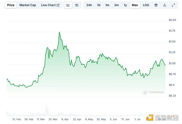 根據 Coingecko 統計數據,JUP 自 2024 年 1 月 31 日發幣以來,價格已經上漲超過 2.8 倍(最低點 0.46 美元,最高點 1.75 美元),主要交易場所為 Binance,OKX,HTX,bybit 等一線交易所。