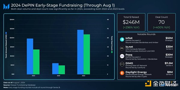 DePIN(Decentralization游戲基礎(chǔ)設(shè)施)保持持續(xù)增長。融資規(guī)模同比增長296%,總市值增長400%,至200億美元。下面我們來一起深入了解DePIN領(lǐng)域現(xiàn)狀。