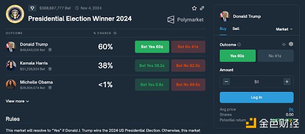 Polymarket的運作類似于任何一個常規交易所,它作為一個市場,買家和賣家在這里相會,表達各自對價格的看法——對Polymarket而言,也就是事件結果的價格(概率)。結果的交易區間為0%(結果發生概率為0%)到100%(結果發生概率為100%)之間。與所有市場一樣,資產的價格(事件發生的概率)是由邊際美元和可用流動性之間的比率決定的。
