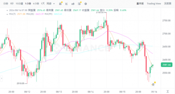 Ethereum價格昨日最低跌至2500美元,24小時內(nèi)跌幅超過3.5%。