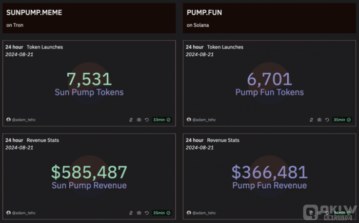 在近期Blockchain和crypto領(lǐng)域,Tron生態(tài)Tokens發(fā)射平臺(tái)Sun Pump引起了廣泛關(guān)注。這個(gè)新興平臺(tái)成功復(fù)制了Pump.fun的經(jīng)驗(yàn)?zāi)J,掀起了Tron生態(tài)的模因幣熱潮。與此同時(shí),Blockchain研究員Adam的最新數(shù)據(jù)也顯示,Sun Pump在協(xié)議日收入上超越了Pump.fun。這一現(xiàn)象引發(fā)了市場(chǎng)的廣泛討論和投資者的高度關(guān)注。