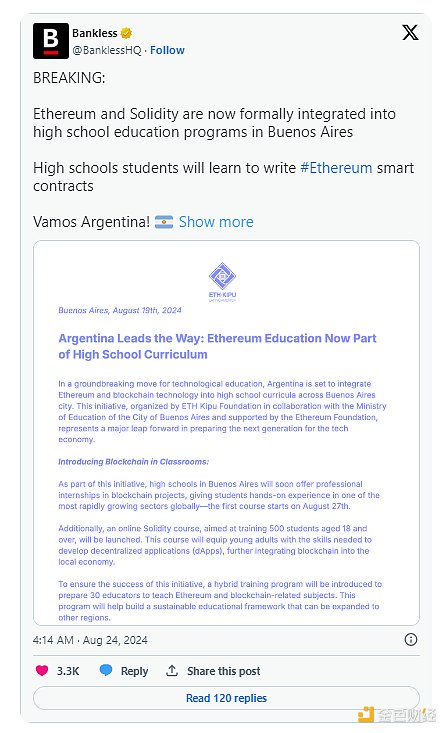 只需一百多家初創(chuàng)公司,提供5000多份加密工作,將加密價(jià)值帶入阿根廷……阿根廷可能成為第一個(gè)達(dá)到Crypto逃逸速度的國(guó)家,成為全球第一個(gè)端到端的加密驅(qū)動(dòng)型國(guó)家。