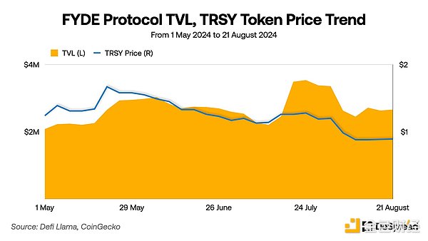 FydeTreasury向那些提高$TRSY(LiquidVault流動(dòng)性Token)市場(chǎng)流動(dòng)性的流動(dòng)性提供者獎(jiǎng)勵(lì)Fyde積分,并承諾未來將根據(jù)這些積分分發(fā)其治理Token$FYDE。