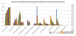 上述兩部分合計占到15%的總支出。此外,維基媒體基金會通過廣告和支付渠道在社會上發起的募捐活動支出,占到總支出的4%。維基百科的挑戰:騙捐、腐敗與政治正確