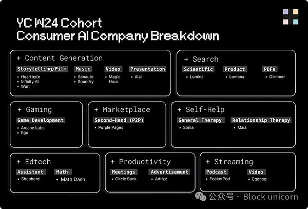 通用助手和內容生成工具在傳統消費者級AI領域占據主導地位。然而,激烈的競爭使得進入這個市場充滿挑戰且成本高昂,這也解釋了為什么這些類別在加密市場地圖上的代表性不如傳統AI中的地位強勢。