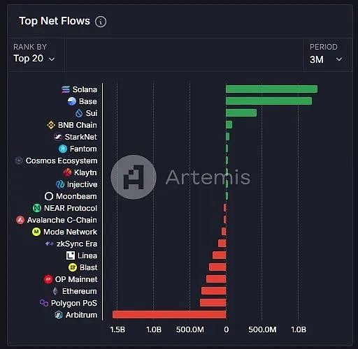 譯者按:憑借AI發(fā)幣平臺(tái)Clanker及Virtuals的爆火,行業(yè)對(duì)Base生態(tài)的關(guān)注出現(xiàn)「暴漲」。當(dāng)?shù)貢r(shí)間11月26日,Base上的交易量直線拉升,達(dá)到約 1136萬(wàn)筆,為歷史上首次單日交易量突破1000萬(wàn)筆(其中有超一半的交易被撤回。Base協(xié)議負(fù)責(zé)人 JessePollak 回應(yīng)稱,交易被撤回系搶跑機(jī)器人試圖瘋狂捕獲MEV所致,并計(jì)劃進(jìn)一步擴(kuò)展Base)。此外,近期Solana生態(tài)Memecoin龍頭pump.fun因直播一事遭社區(qū)「轟炸」,一時(shí)間資金似有向Base等生態(tài)流動(dòng)的跡象。Artemis 數(shù)據(jù)顯示,Base最近1個(gè)月的鏈上資金流入達(dá)到了8.15億美元,在所有鏈中排名第一,而作為對(duì)比,Solana的資金凈流入僅3.04億美元。所以,Baseseason要來(lái)了嗎?