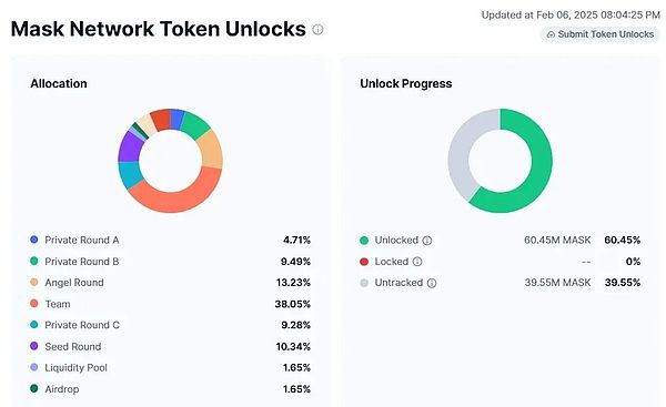 數(shù)據(jù)來源:CoinMarketCapTokens解鎖進度
