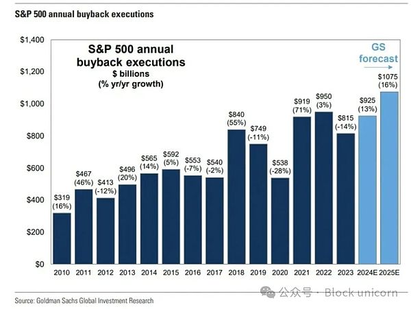將Tokens價值與協議收入掛鉤的轉變并不新鮮。最近幾周,幾個團隊宣布了根據收入按比例回購或銷毀Tokens的機制。其中值得注意的是SkyEcosystem、RoninNetwork、JitoSOL、KaitoAI和GearboxProtocol。Tokens回購類似于美國股市中的股票回購——本質上是一種在不違反證券法的情況下向股東(或在這種情況下,Tokens持有者)返還價值的方式。2024年,僅美國市場就有約7900億美元用于股票回購,而2000年為1700億美元。這些趨勢是否會持續還有待觀察,但我們看到市場明顯分化,一邊是有現金流并愿意投資于自身價值的Tokens,另一邊是兩者都沒有的Tokens。