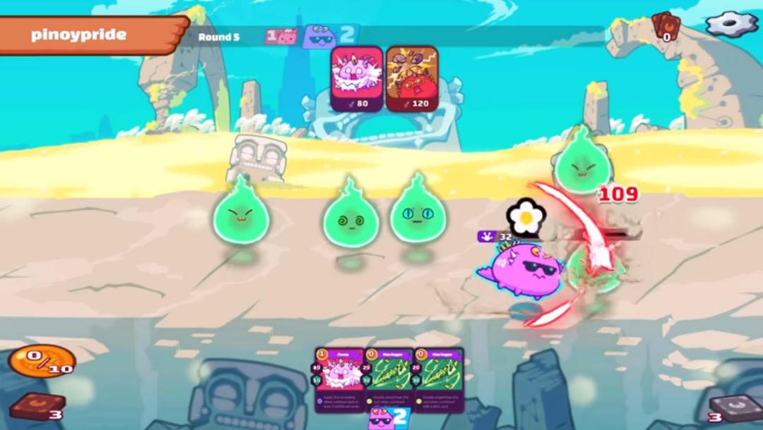 SLP幣的唯一消耗途徑是繁衍寵物,有大量購買需求者多是欠缺強力寵物的新玩家。因此在2021年7月游戲迎來用戶增長巔峰時,SLP幣與美金的兌換比例也達到了新高:按每天打出100SLP幣計算,單日收入可達到約17美元;技術高超的“肝帝”甚至能在當時取得2000美元/月的收入,幾乎是菲律賓藍領收入的10倍。